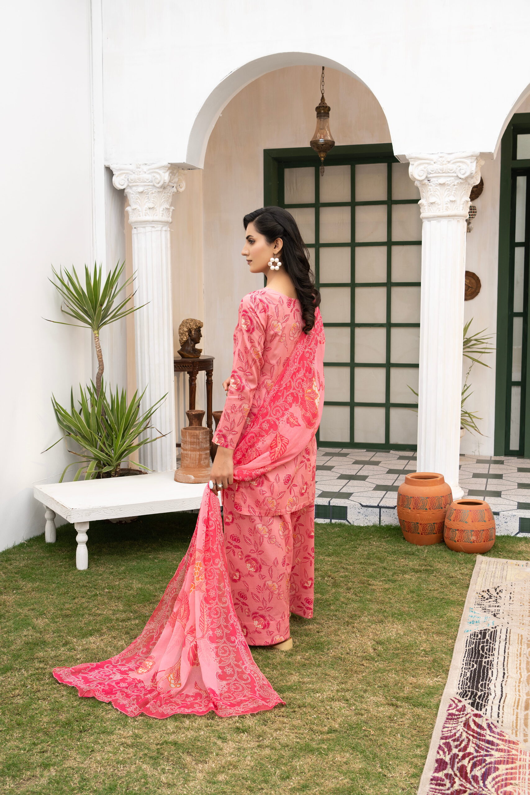 The Daastan Edition has been thoughtfully designed for women who appreciate elegance with a touch of vibrancy. Crafted from premium-quality, lightweight and breathable 100% cotton lawn fabric, this ensemble ensures comfort throughout warm summer days while maintaining a polished and stylish appearance. The flowing crinkle dupatta paired with the lively floral patterns makes Daastan a charming choice for social gatherings, festive brunches, or elegant everyday wear.